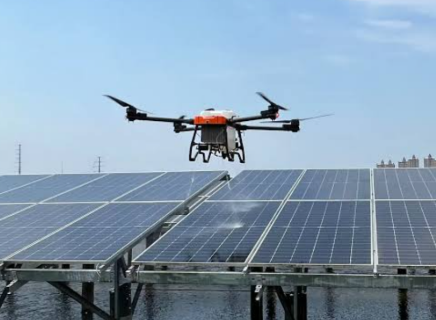 ドローンでの定期的なパネルの洗浄&ワックス塗布作業 降雪前と冬期間に定期的に散布すれば効果抜群です。 |